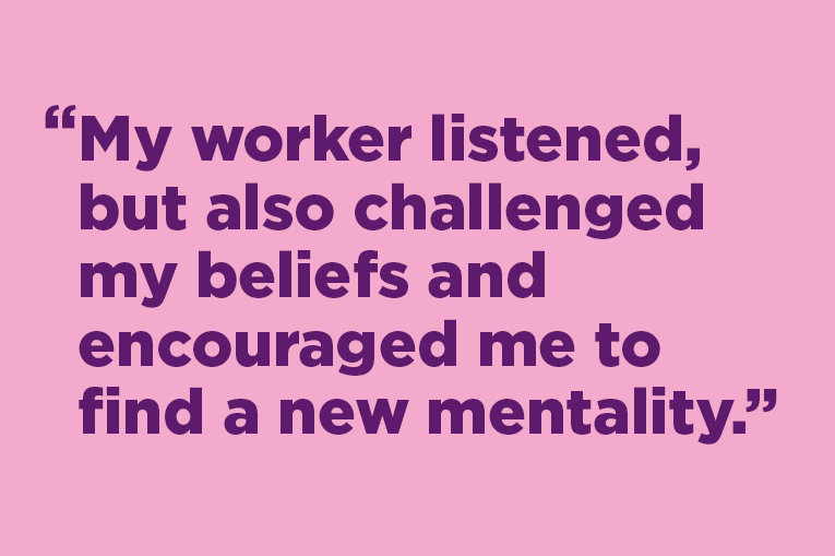 They genuinely listened to what I had to say; they understood, but also challenged my beliefs and habits and encouraged me to find a new mentality. I immediately felt comfortable with my worker, and even when my care was transferred to a new worker, I clicked with them as well.